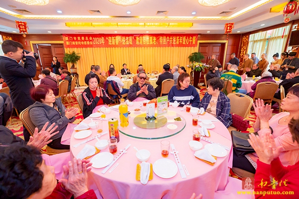 “爱心厦门”在行动,新春佳节来临之际,为让困难群众度过一个温暖祥和的新年,1月4日,厦门南普陀寺慈善会与厦门市慈善总会联合举办“迎新春·送温暖”慈善午宴,百位孤老、特困户、社区工作者和爱心人士近140人欢聚一堂,共享“慈膳”,欢度愉快的新年,这是贯彻“爱心厦门”建设动员大会精神的又一具体行动。