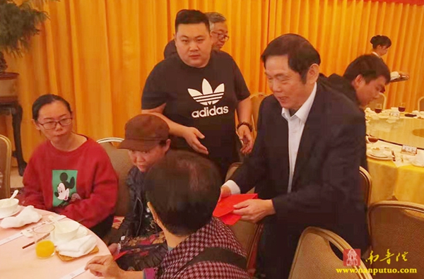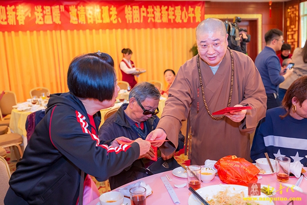 南普陀寺慈善会会长则悟大和尚在致辞中表示,党的十八大以来,以习近平同志为核心的党中央提出了“精准扶贫”的号召,带领全国人民为打赢脱贫攻坚战、决胜全面建成小康社会而不懈奋斗。省委常委、厦门市委胡昌升书记在“爱心厦门”建设动员大会上提出,要“发动全市人民广泛开展敬老助残济困等爱心行动”。在这样的背景下,这次活动更显意义殊胜。希望通过团圆相聚、共宴饮食的形式,传递大爱温情、送上新年祝福、弘扬慈善文化,让佛教慈善普惠更多困难人群,促进社会和谐与爱心城市建设;更希望大家日子过得越来越好,“但使新年胜旧年”。则悟大和尚说,这个活动能够连续举办十七年,实为不易。厦门市慈善总会坚持一起开展这个项目,把活动做好、做出特色、形成传统,使这个活动成为了凝聚慈善力量、关爱弱势群体、广结善缘福报的重要平台,在此也由衷地希望活动能够让越来越多的社会爱心人士受到鼓舞与感染,加入到慈善队伍中,一起造福社会、共同帮助困难群众,共建和谐、互助、友爱、美好的“爱心厦门”。