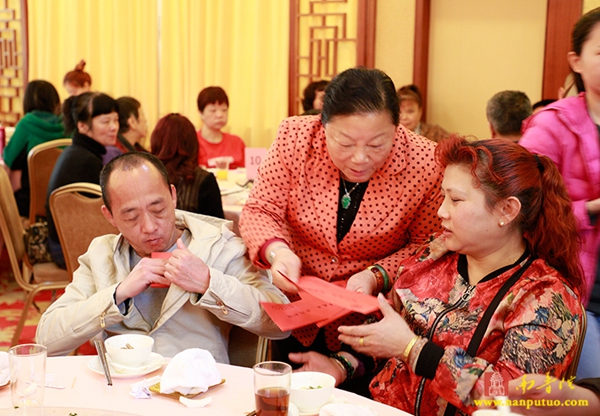 席间大家举杯同祝新年、互送祝福,脸上都洋溢着幸福满足的笑容。在厦门市福利院住了20年的沈大爷今年已经92岁高龄,他说:“每一年的慈善午宴都受邀参加,今年是‘爱心厦门’提出后的首次午宴,意义更为特别,生活在厦门的老人都很幸福,千好万好,社会主义大家庭最好,这场午宴让大家有浓浓的获得感、幸福感,福利院的老人们都精心穿着打扮,用新面貌迎接鼠年到来。”席间,则悟大和尚、杨金兴会长、李丽红副局长等来到长者和困难群众中,给大家发放慰问金,送上新年祝福。午宴结束后,还为孤老和困难户发放了慰问品。
